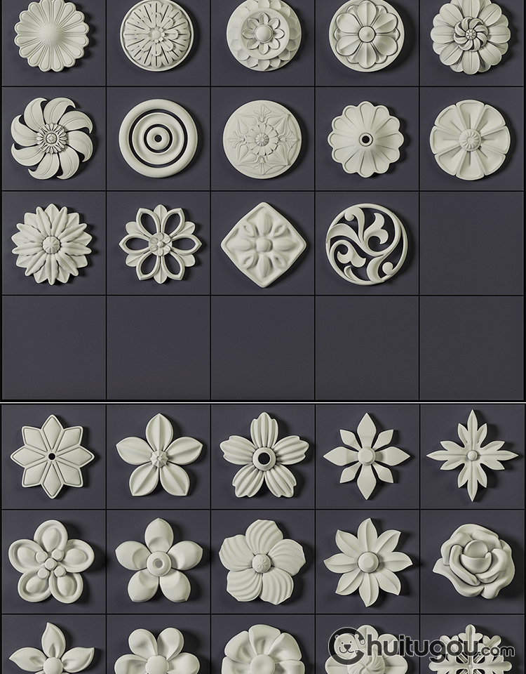 Zbrush欧式建筑家具装饰雕花角花IMM笔刷ZB画笔FBX OBJ花纹3D模型