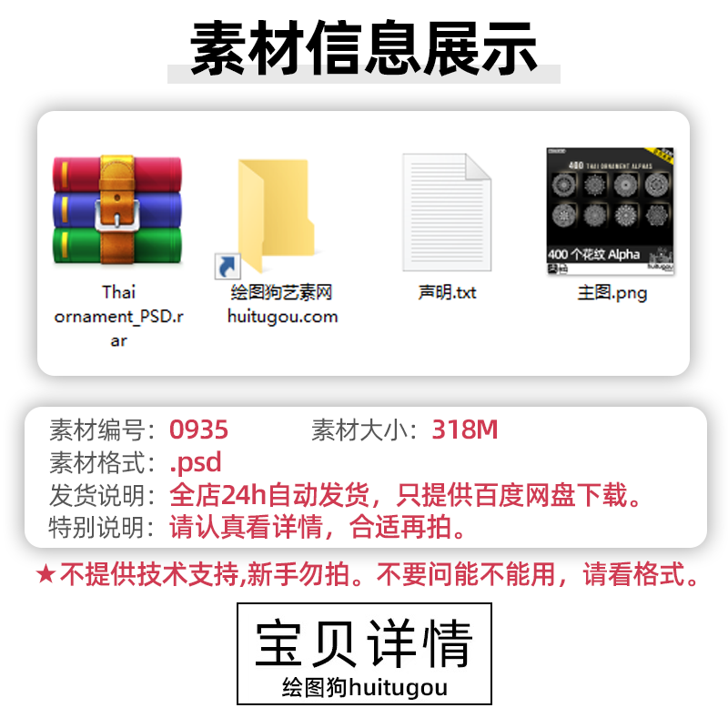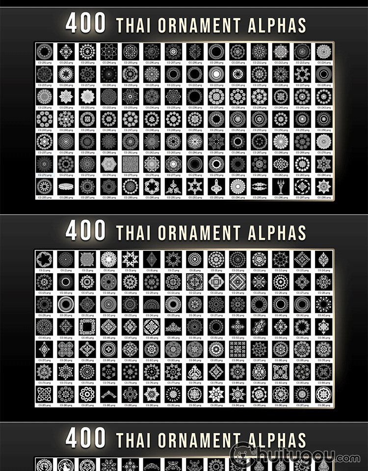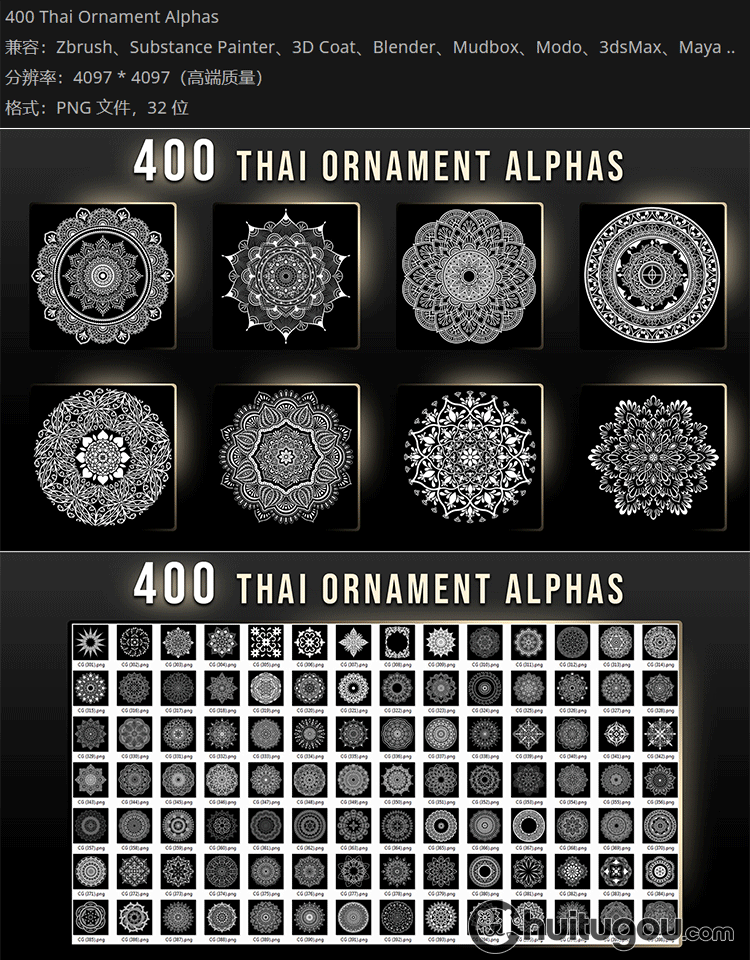ZB SP 阿尔法Alpha纹理贴图 泰国复古装饰花纹 黑白遮罩psd贴花