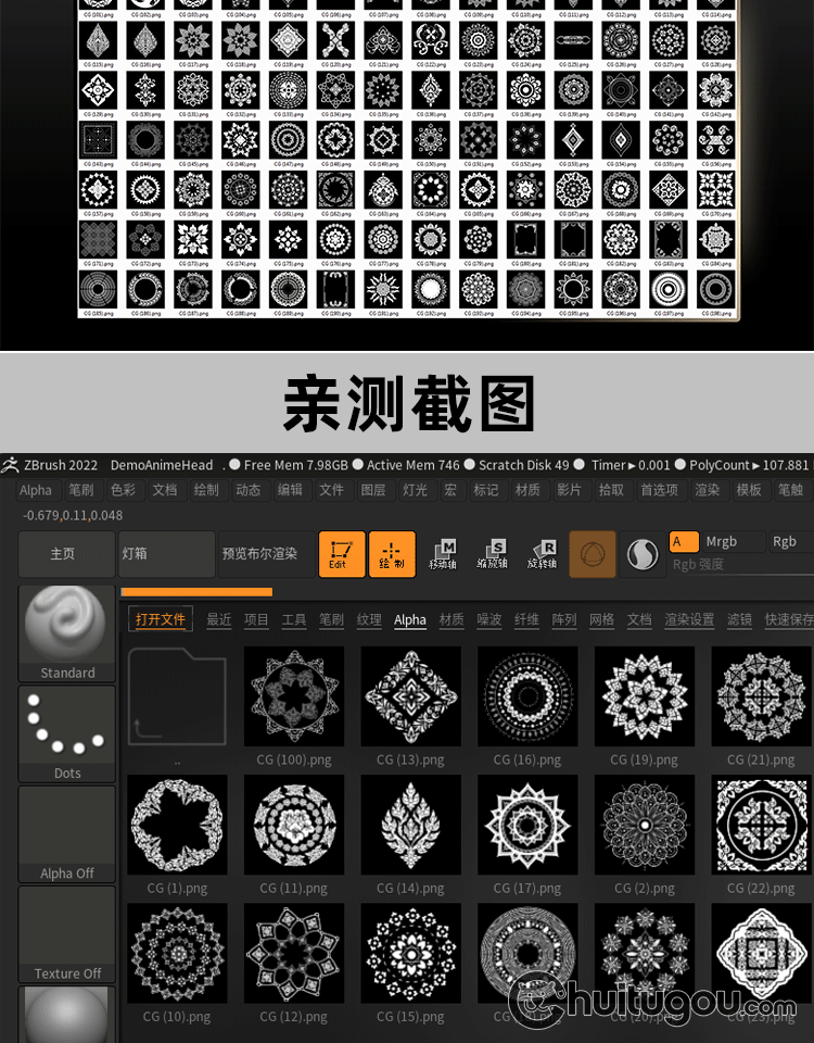 ZBrush阿尔法ZB纹理贴图10款鳞片装甲铠甲编织无缝平铺alpha笔刷