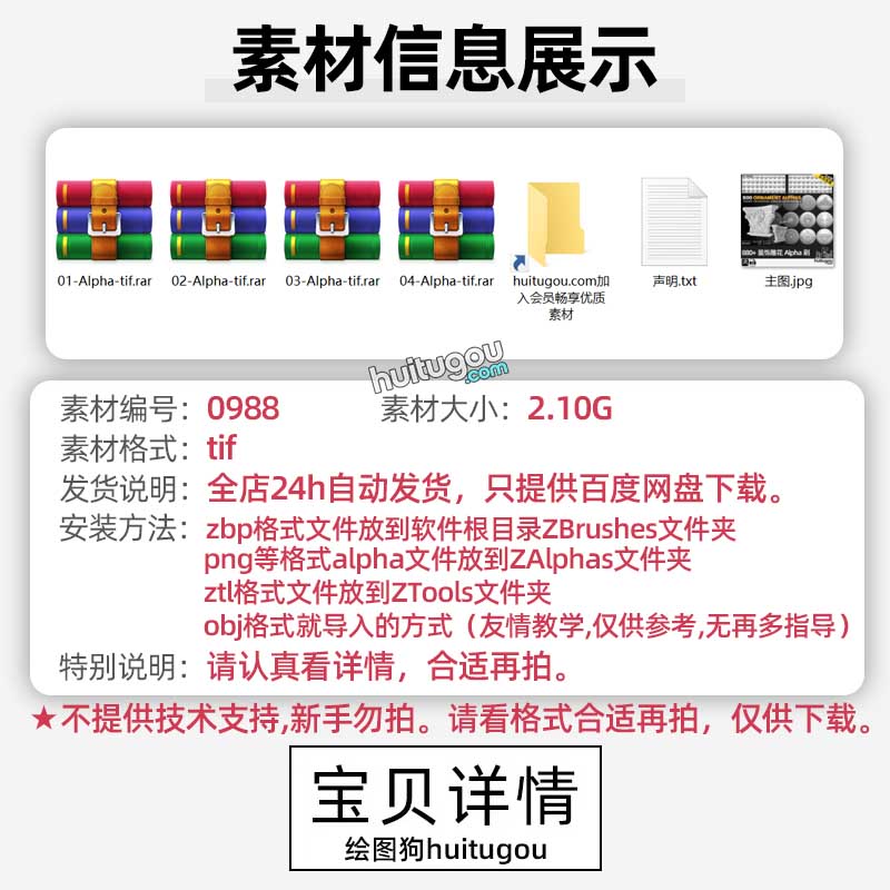 ZBrush破旧损坏墙面地面alpha笔刷ZB阿尔法tif建筑地板墙壁纹理