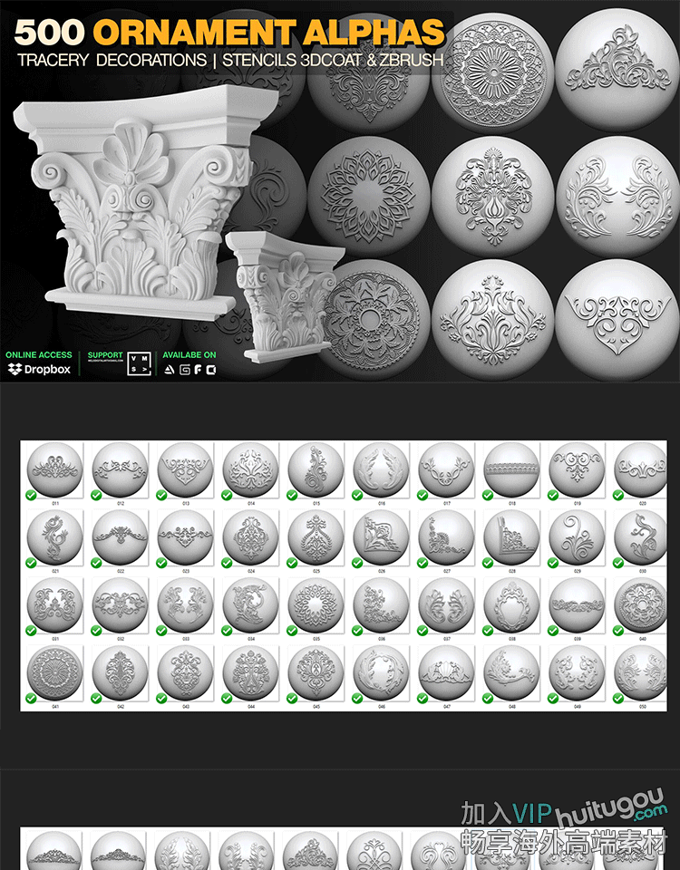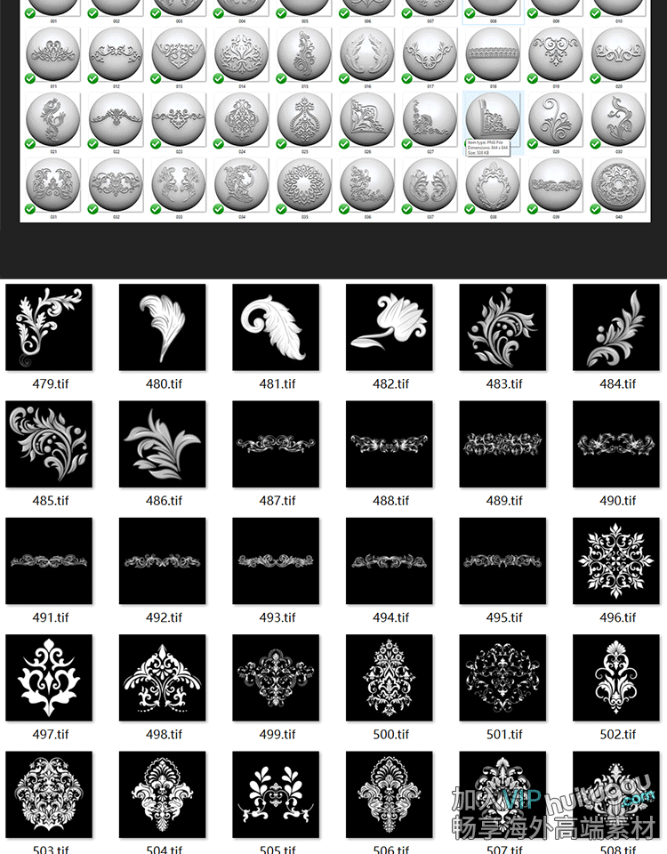 ZBrush欧式雕花装饰花纹Alpha笔刷tif格式3D雕刻zb阿尔法纹理贴图