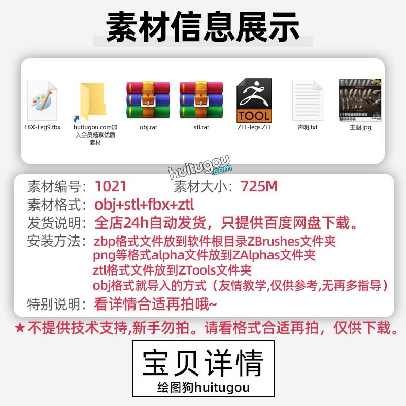 ZBrush女性大腿部姿势ZB模型ZTL格式FBX素材OBJ腿脚STL打印3D模型
