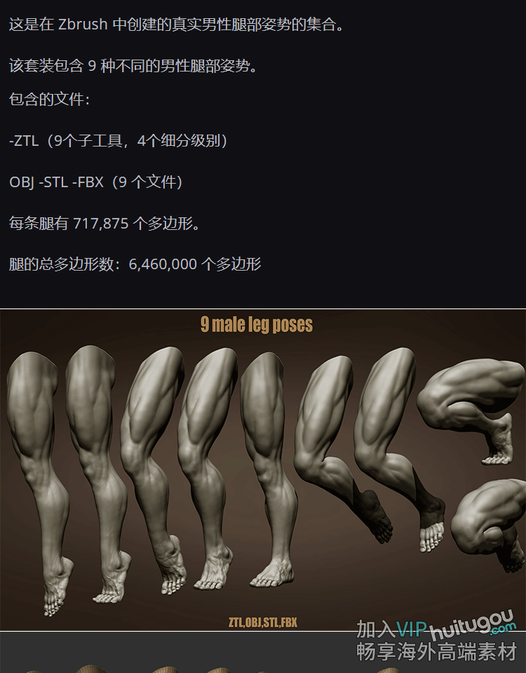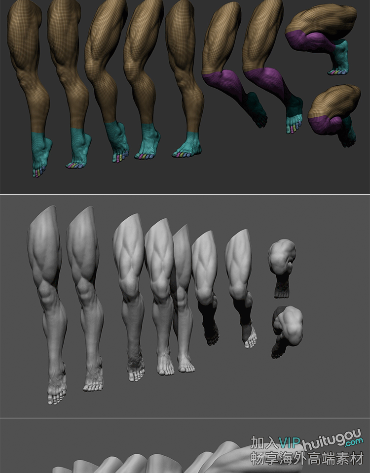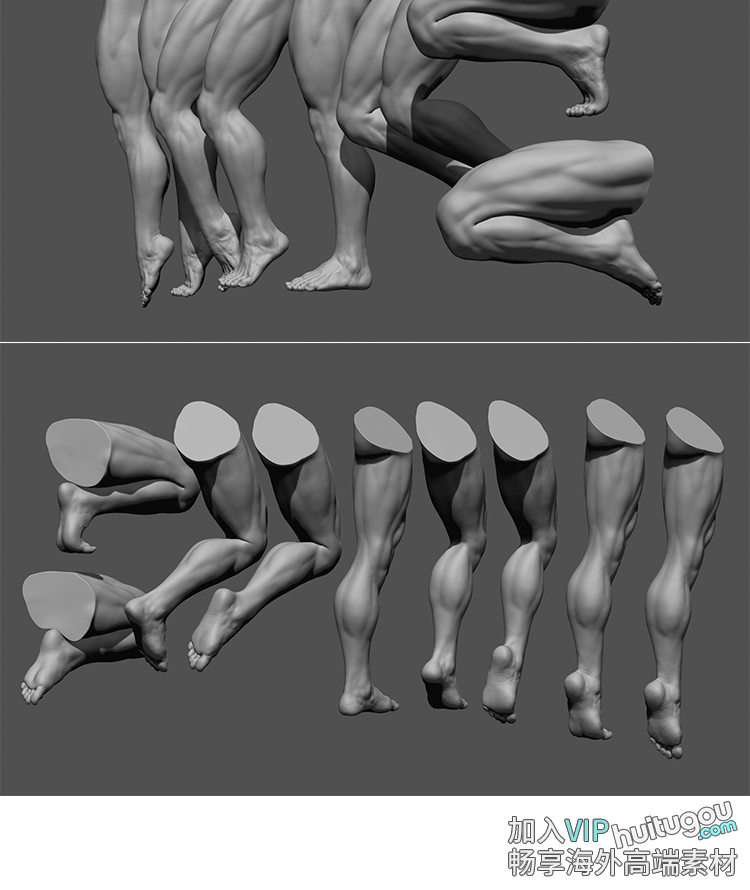 ZBrush男性腿部3D模型大腿多姿势腿脚部细节ZTL人物肢体STL打印