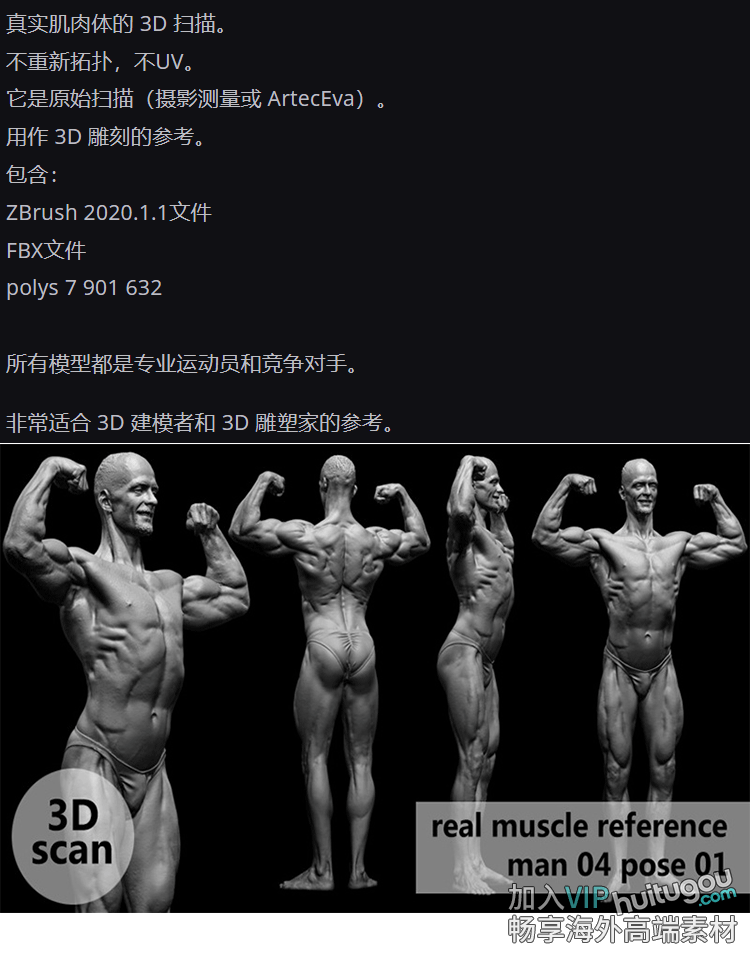 真实男性人体3D扫描解剖学姿势模型muscleanatomy Man04 pose 01