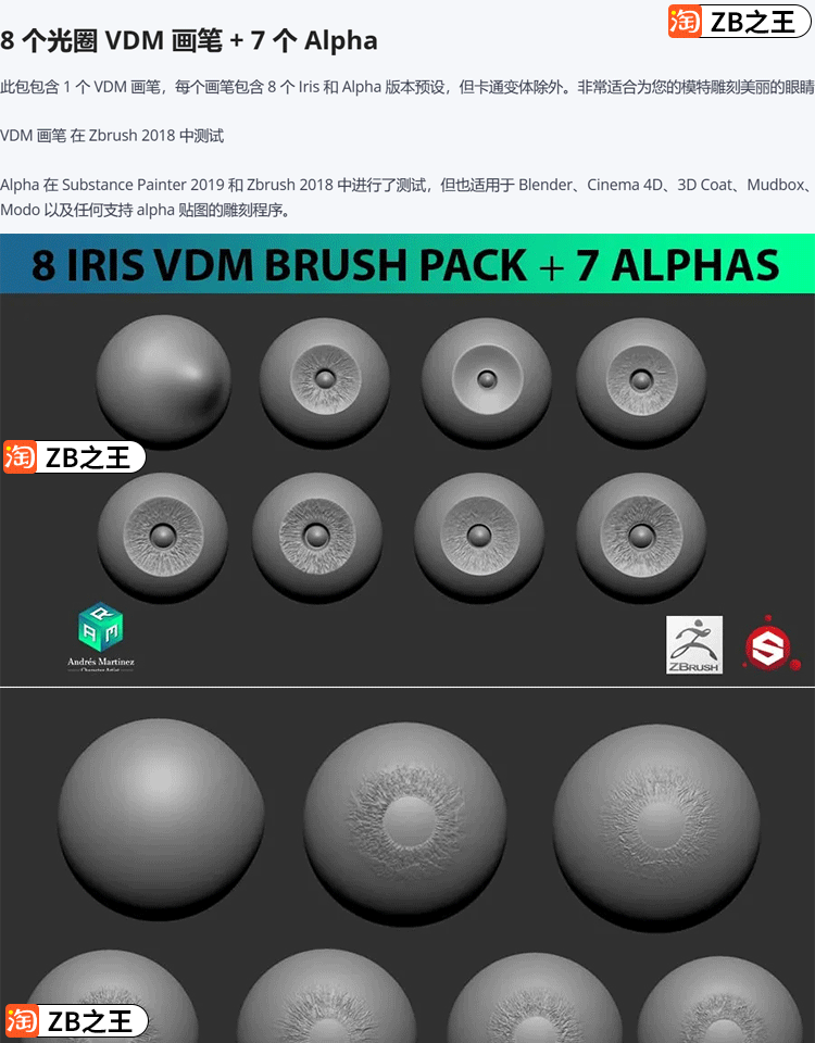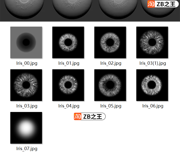 ZBrush素材ZBP格式Alpha笔刷瞳孔虹膜VDM笔刷ZB雕刻人物画笔