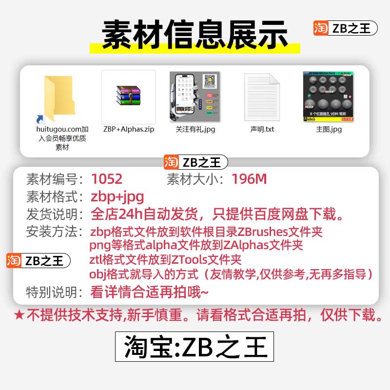ZBrush素材链条链子ZBP格式笔刷ZB建模雕刻IMM插入笔刷FBX模型OBJ