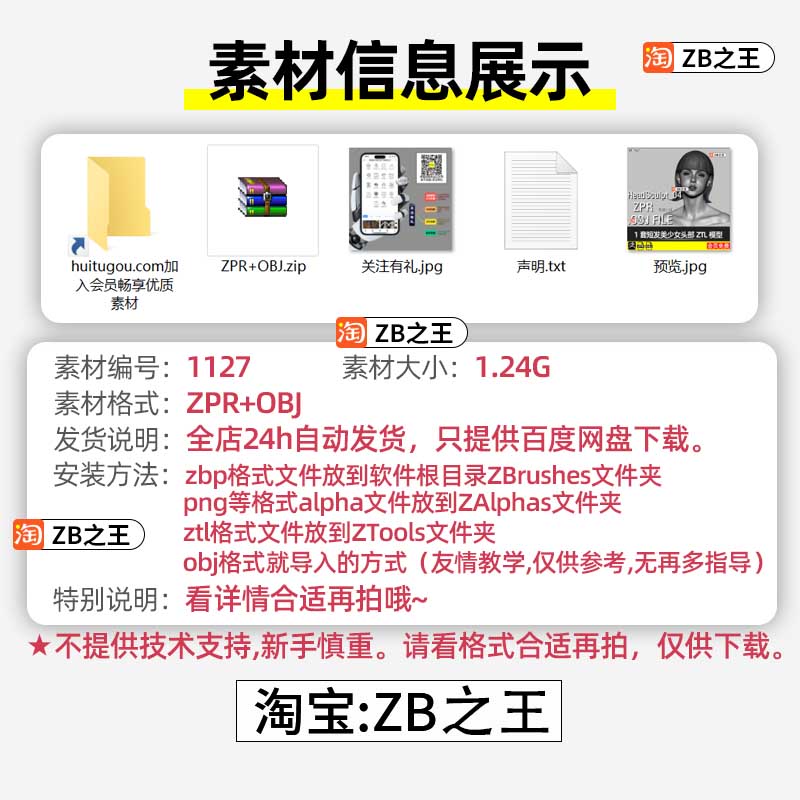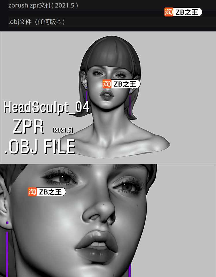 ZBrush素材ZPR短发美少女头部OBJ模型ZB建模雕刻基础网格素材