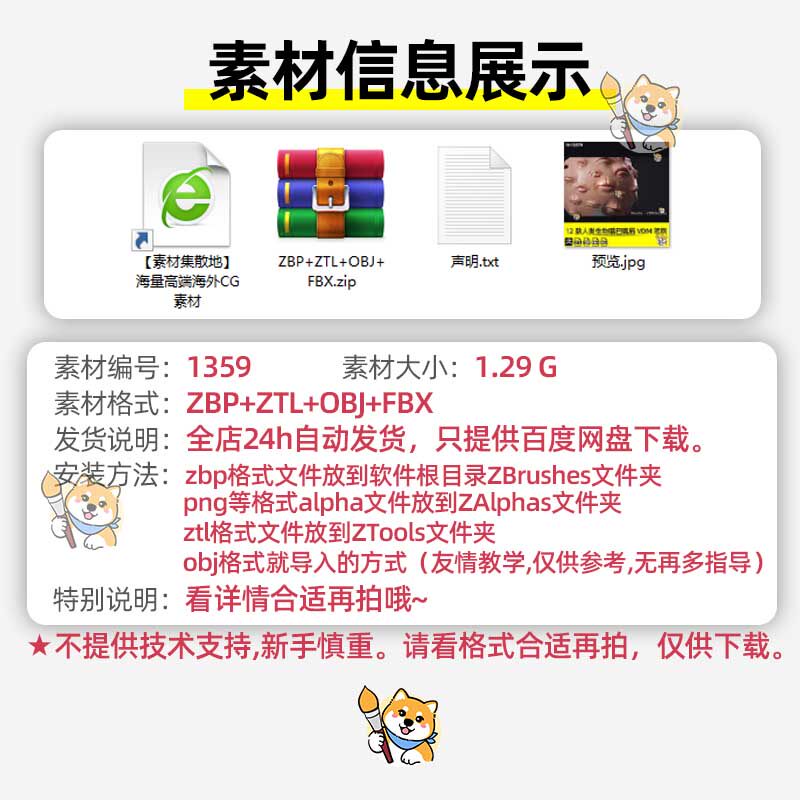 ZBrush笔刷40款人类精灵耳朵IMM笔刷zbp格式ZTL工程FBX模型OBJ
