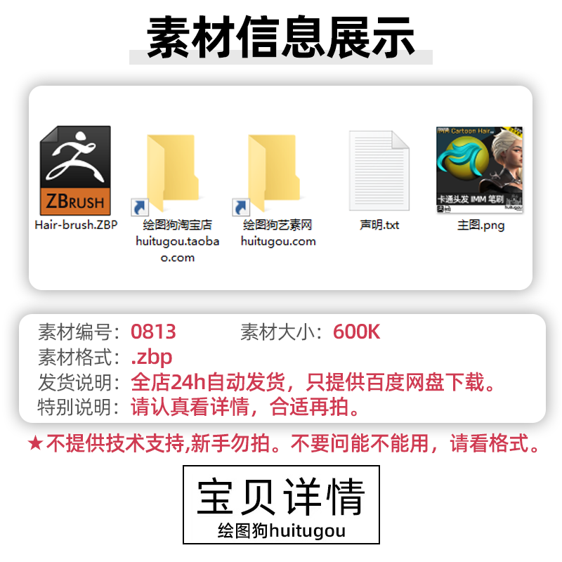 Zbrush卡通Q版头发笔刷zbp画笔ZB建模塑形雕刻素材ztl格式znm文件