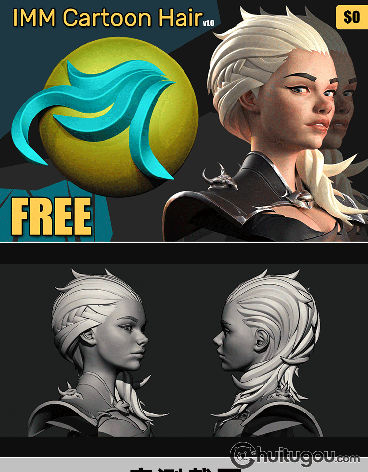 Zbrush卡通发型头发IMM笔刷模型ZB画笔zbp人物建模雕刻设计3D素材
