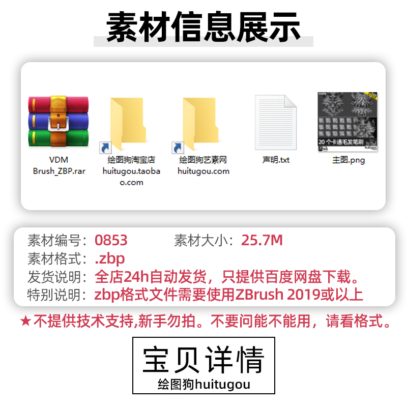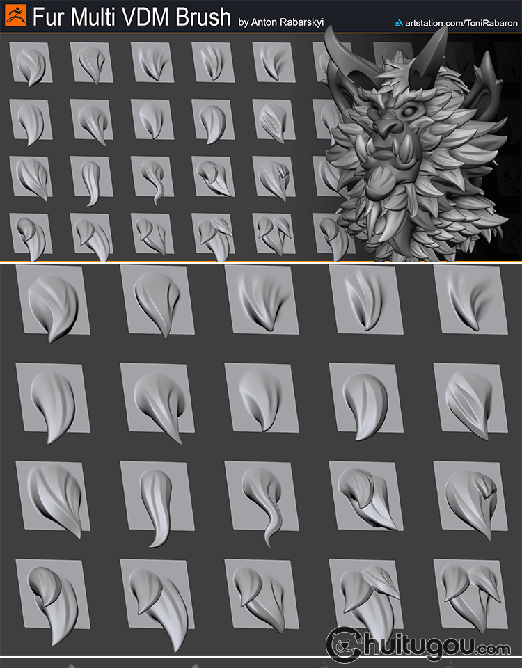 ZBrush人物动物粗糙毛发毛皮VDM笔刷zbp画笔ZB卡通短毛雕刻素材