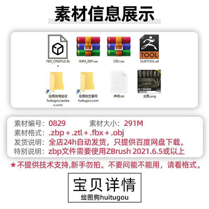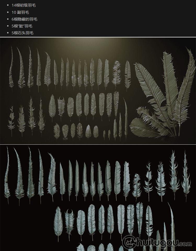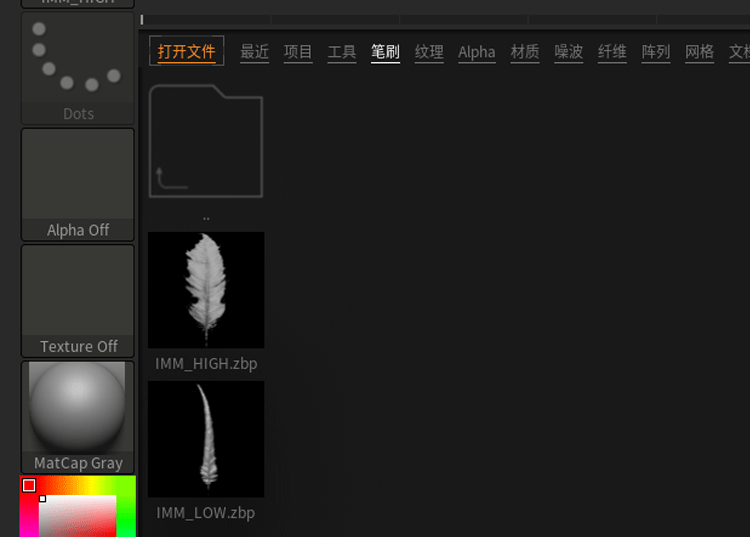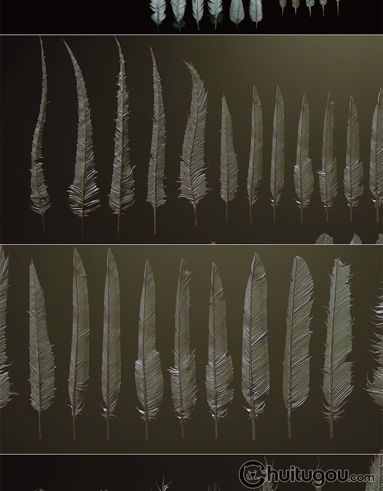 Zbrush羽毛IMM笔刷zbp画笔ZB雕刻建模ztl素材羽毛高模fbx模型obj
