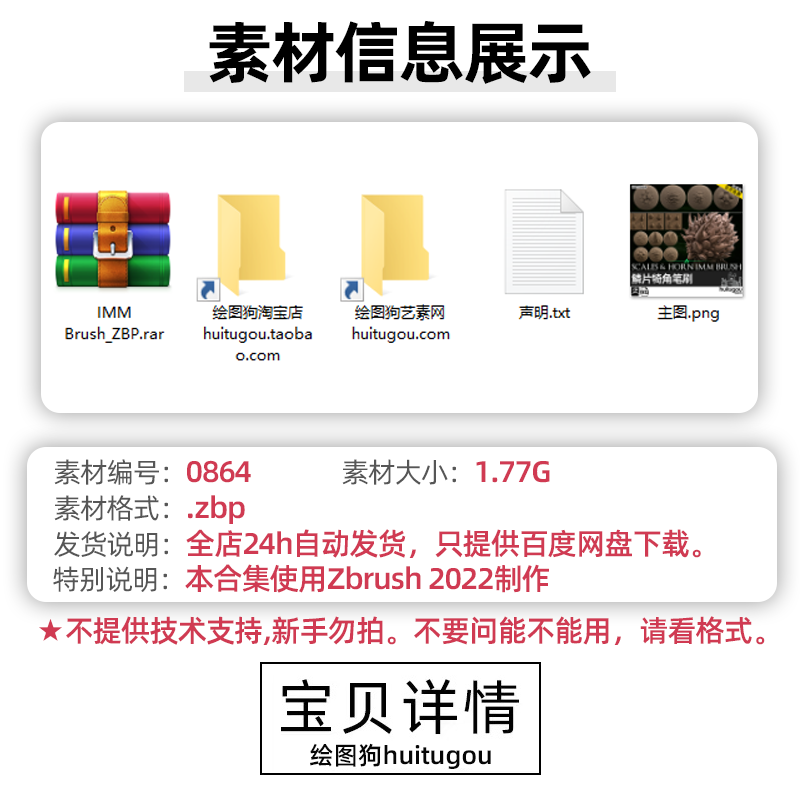 Zbrush恐龙怪物生物蜥蜴皮肤纹理犄角鳞片画笔ZB笔刷zbp雕刻素材