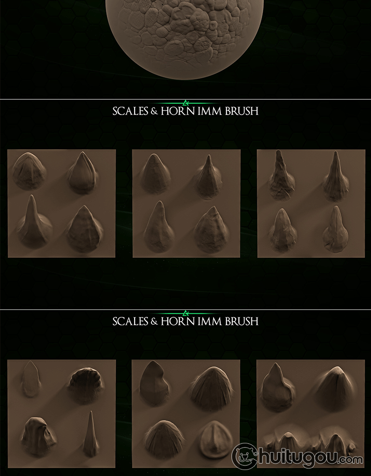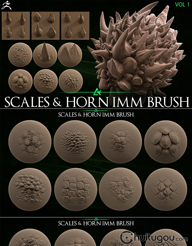 Zbrush怪物怪兽龙恶魔科幻生物皮肤鳞片犄角VDM笔刷zbp雕刻纹理ZB