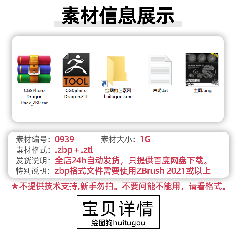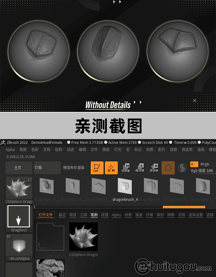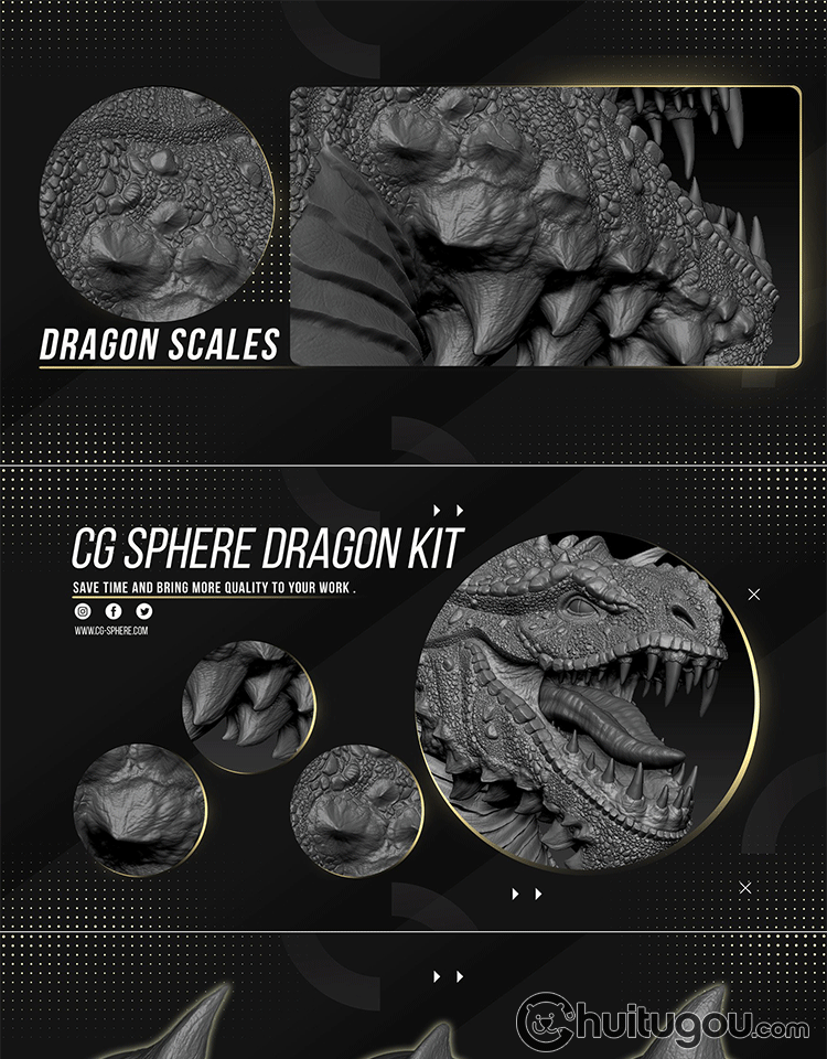 zbrush龙雕刻VDM笔刷套件zbp龙鳞龙角皮肤凸起ZB画笔 ZTL模型素材