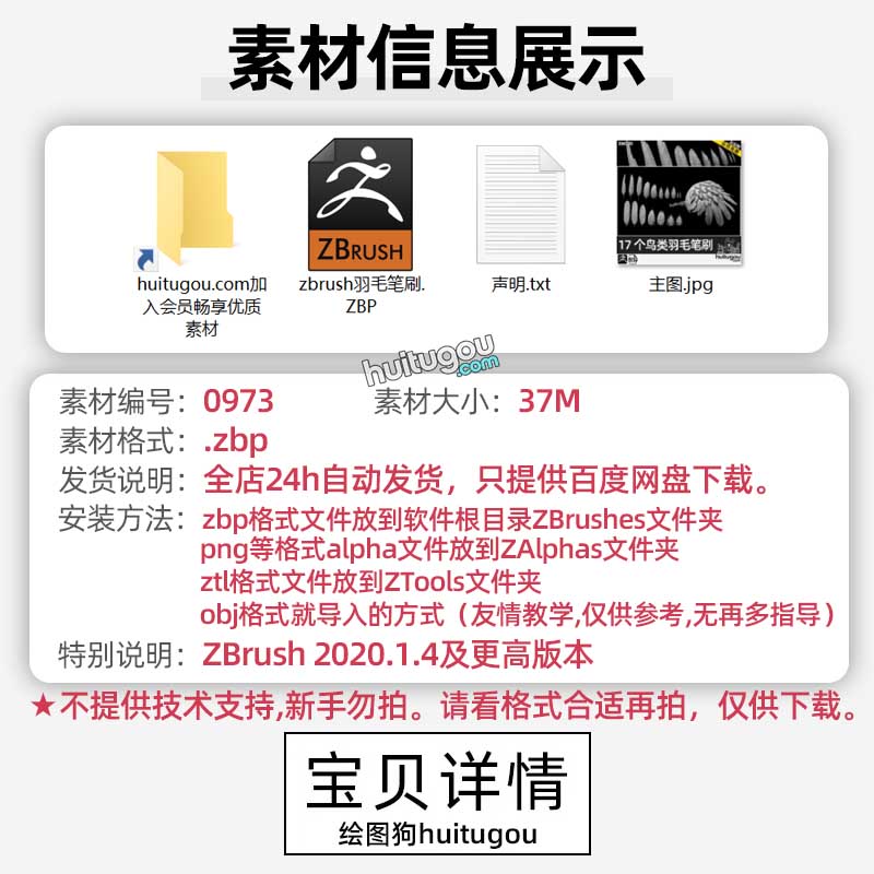 ZBrush鸟类羽毛绒毛IMM笔刷ZB画笔zbp格式老鹰翅膀建模雕刻素材