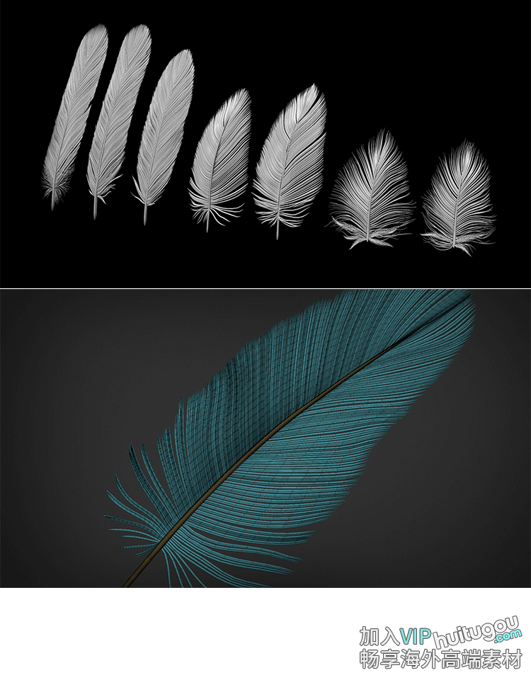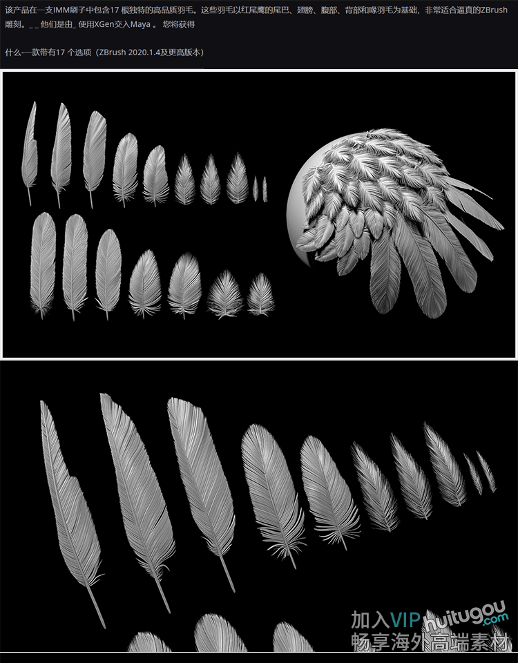 ZBrush笔刷230款逼真鸟类羽毛IMM笔刷ZBP格式ZB建模雕刻素材