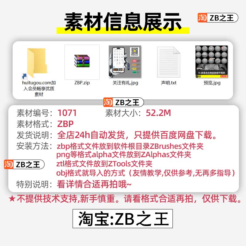 ZBrush笔刷100款怪物生物皮肤zbp附带FBX OBJ模型ZB建模雕刻素材