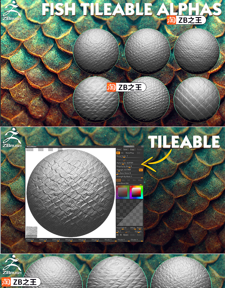 ZBrush纹理25款鱼鳞皮肤龙鳞Alpha笔刷ZB雕刻鳞片阿尔法素材