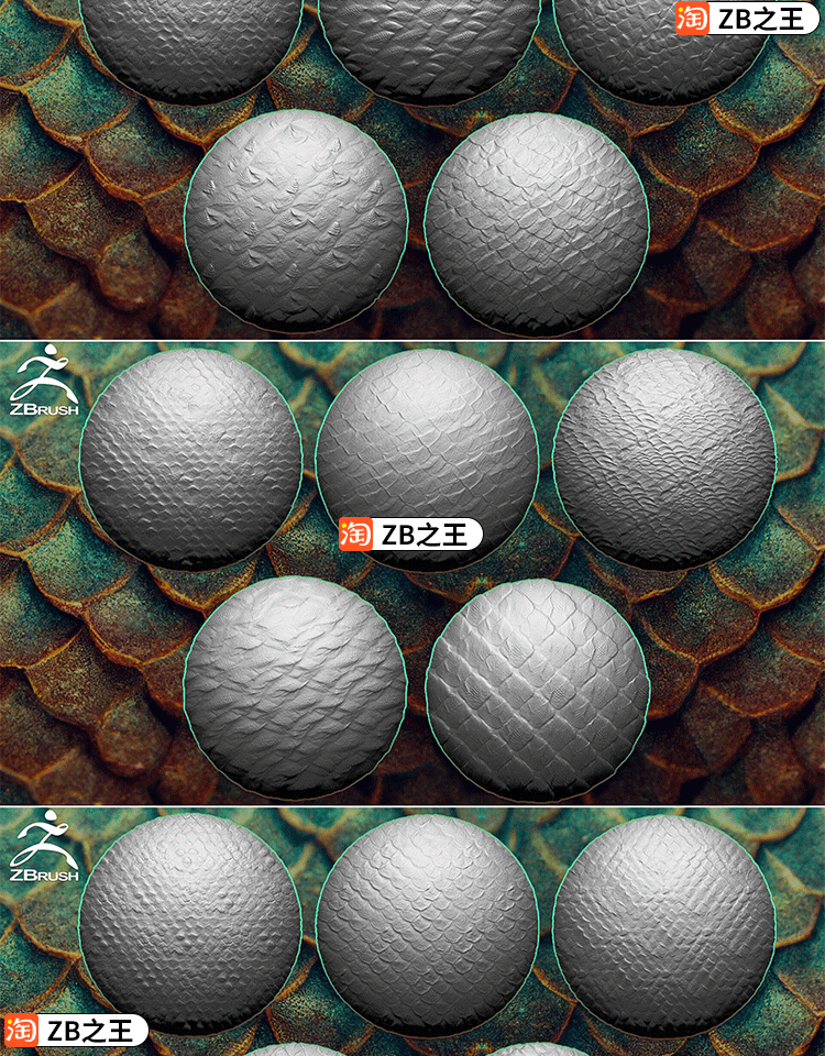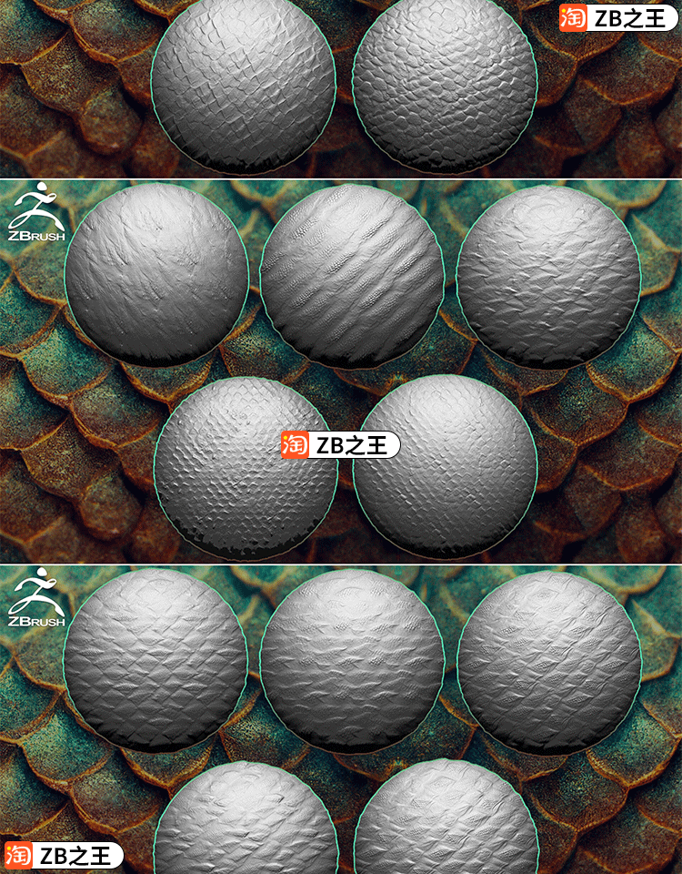 ZBrush笔刷275款爬行动物皮肤龙蛇蜥蜴鳞片Alpha笔刷ZB雕刻素材