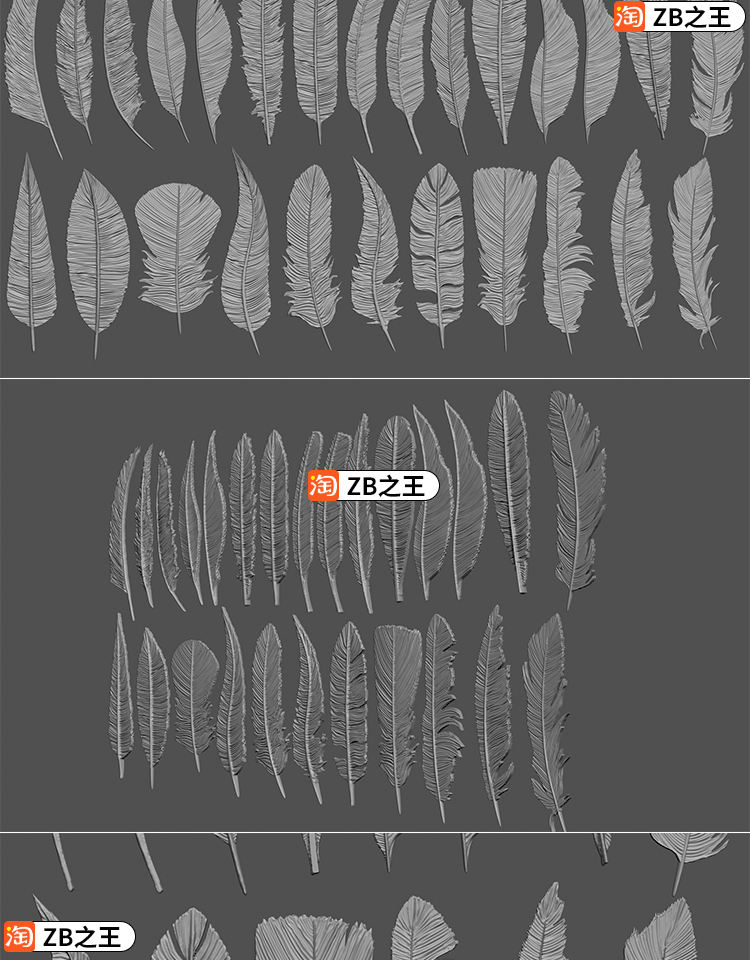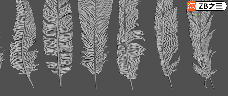 ZBrush笔刷230款逼真鸟类羽毛IMM笔刷ZBP格式ZB建模雕刻素材