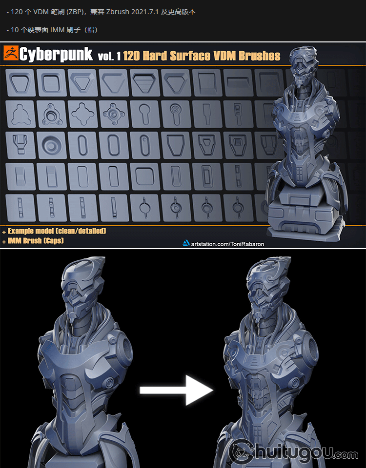 Zbrush赛博朋克机械科幻硬表面VDM IMM笔刷ZB画笔 3D建模雕刻素材