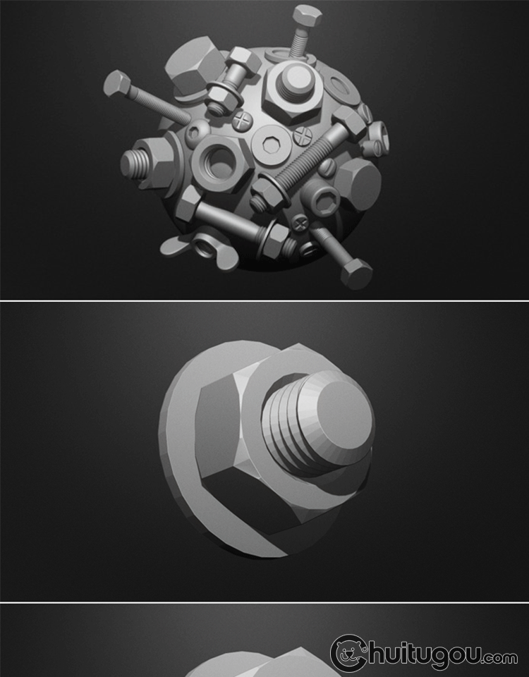 Zbrush螺丝螺帽垫圈螺母螺栓机械机器零件ZB笔刷雕刻素材 zbp模型