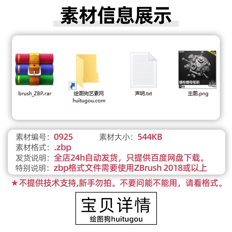 Zbrush机械机器机甲零件螺丝铆钉 硬表面笔刷ZB画笔 附ZTL模型OBJ