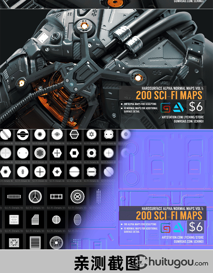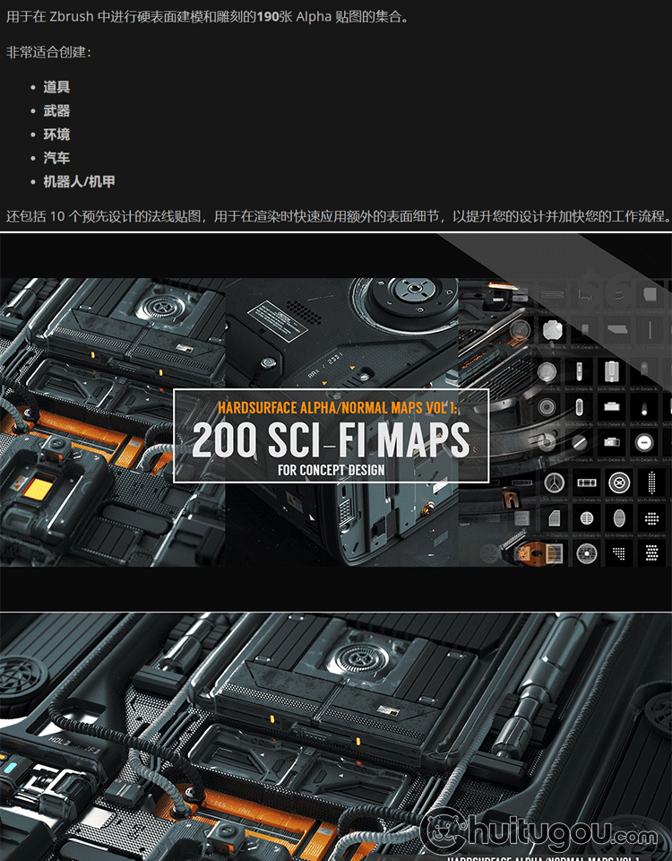 ZBrush Blender科幻机械硬表面集Alpha贴图120款2K灰度图高度图