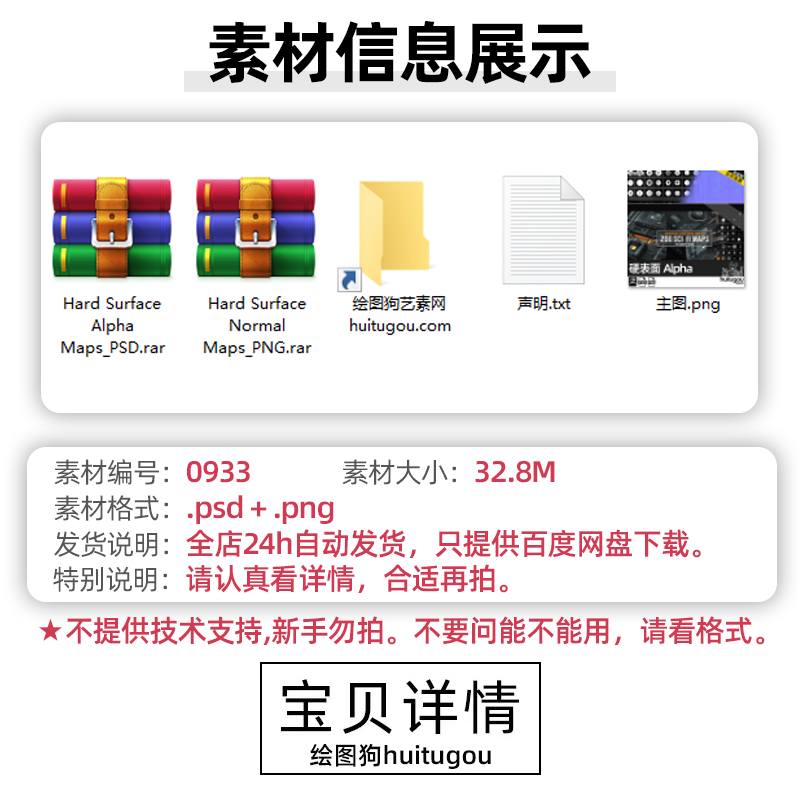 科幻机械硬表面Alpha+Normal法线纹理贴图 武器道具飞船汽车机甲