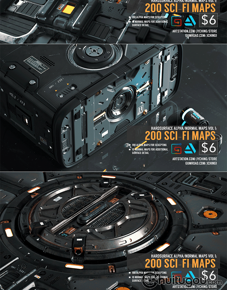 科幻机械硬表面Alpha贴图包阿尔法psd纹理素材 ZB C4D SP MAX可用