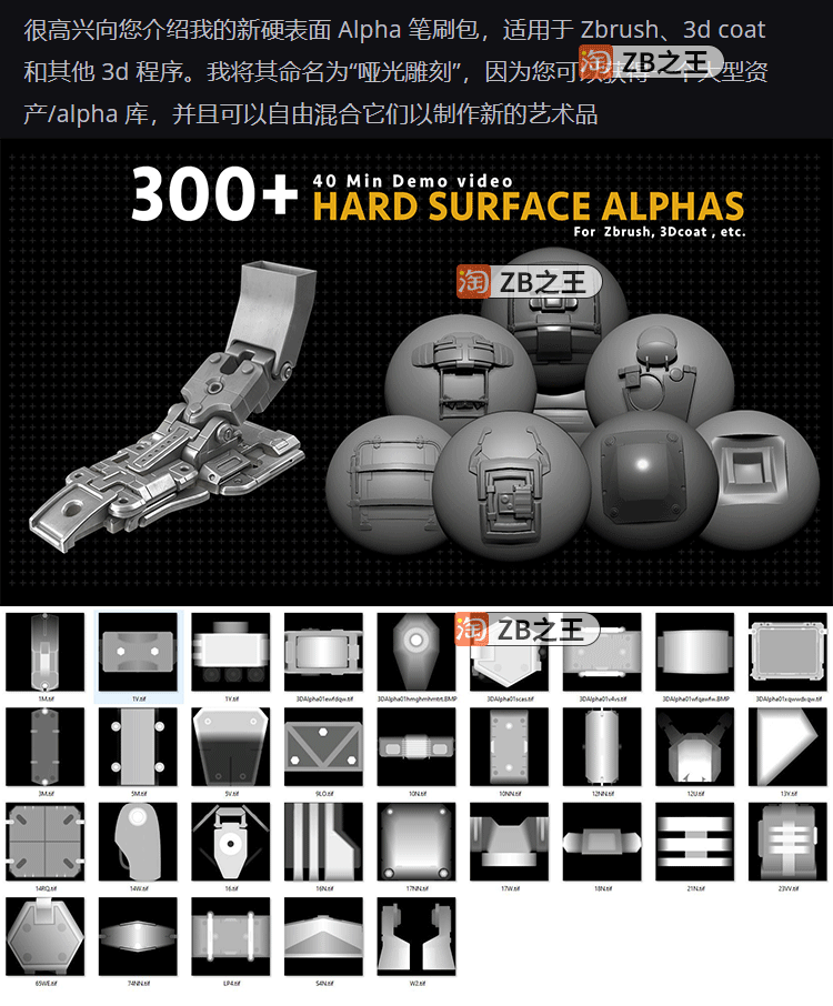 ZBrush素材300+科幻硬表面Alpha贴图ZB建模雕刻BMP格式置换贴图