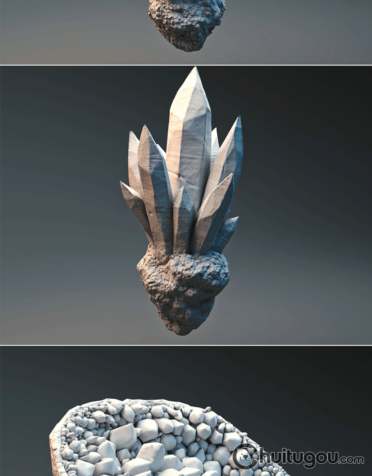 Zbrush宝石水晶钻石IMM笔刷zbp画笔ZB雕刻水晶簇ZTL模型 附材质SP