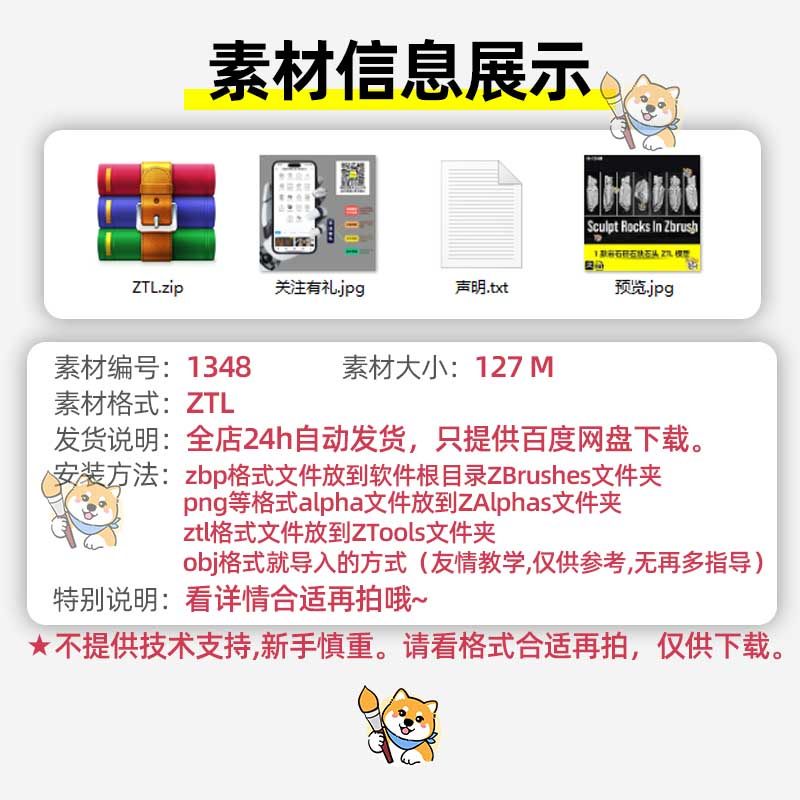 ZBrush素材岩石悬崖石头木材ZBP笔刷带ZTL工程源文件ZB建模雕刻