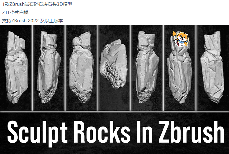 ZBrush模型1款岩石碎石块石头ZTL工程文件ZB雕刻素材