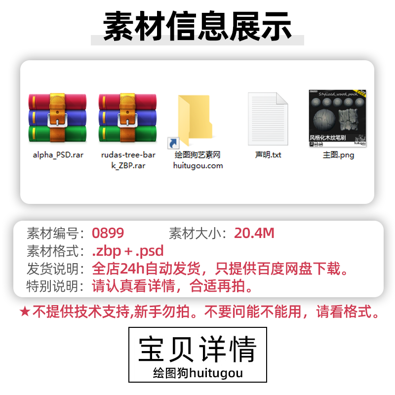 ZBrush素材20款风格化木纹木板树木年轮alpha笔刷PSD纹理ZB雕刻
