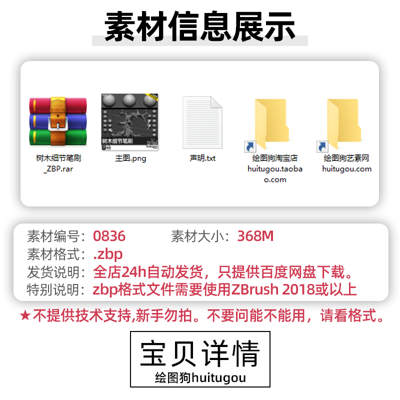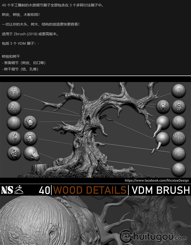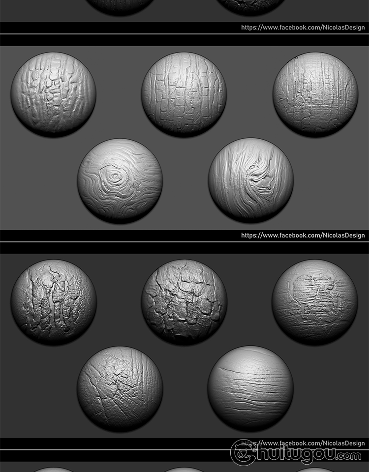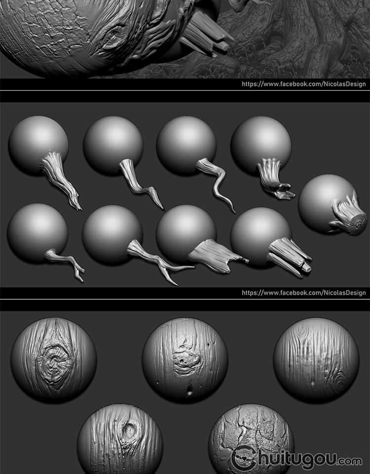 Zbrush木纹木头瘤结枯树粗糙树皮树枝树干树根雕刻zbp笔刷ZB画笔