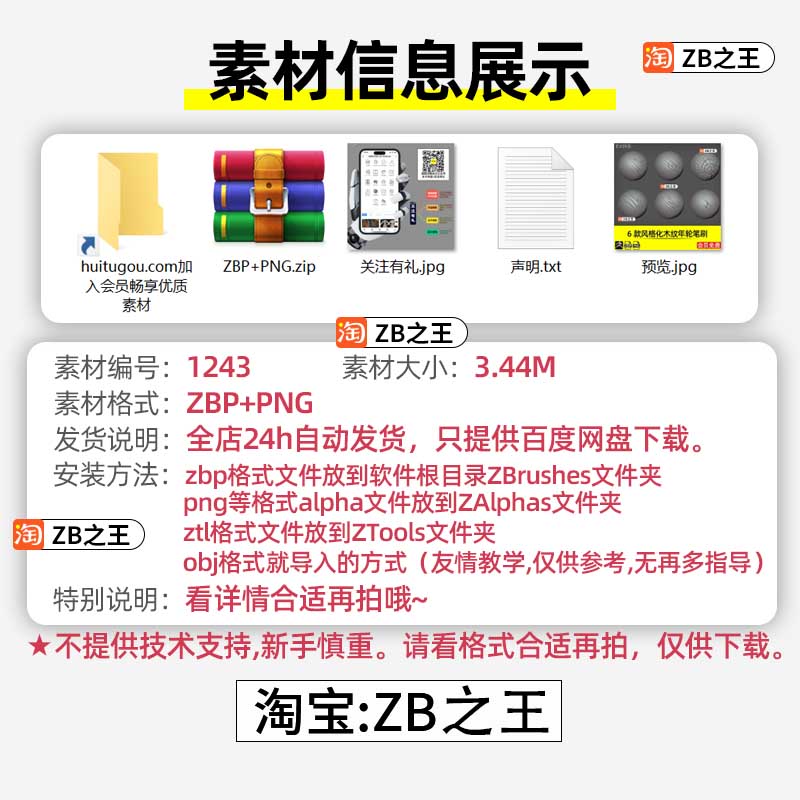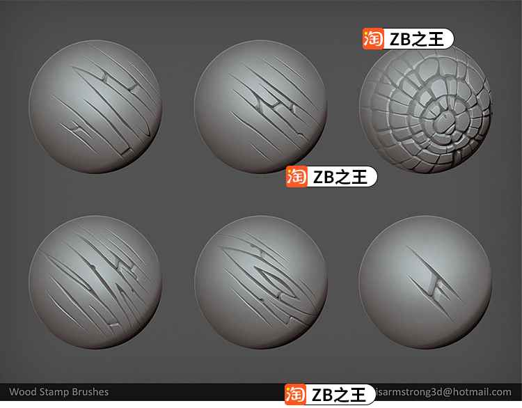 ZBrush素材6款风格化木纹年轮ZBP笔刷Alpha木板纹理ZB建模雕刻