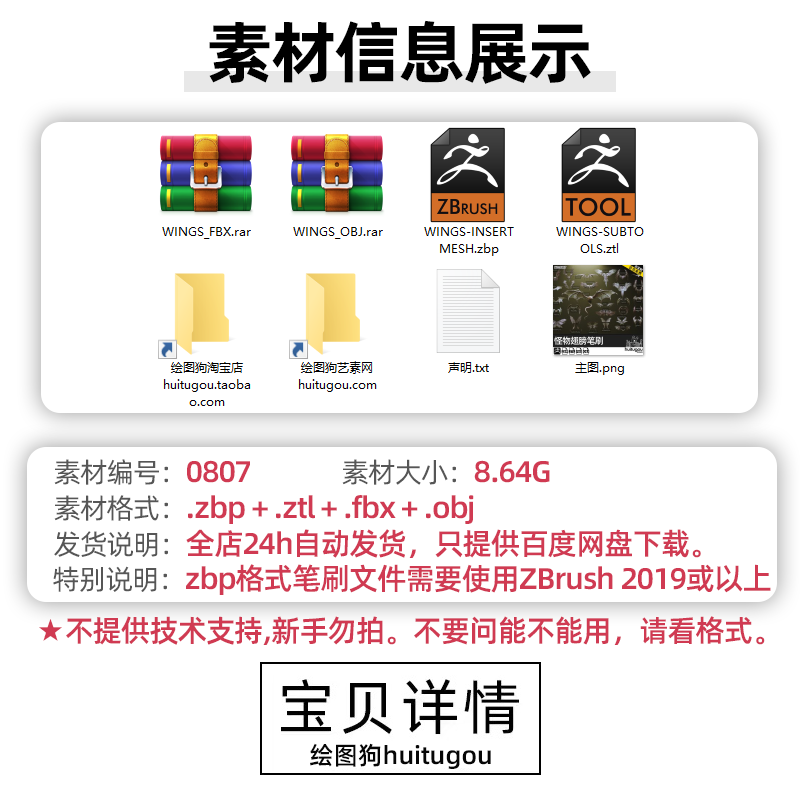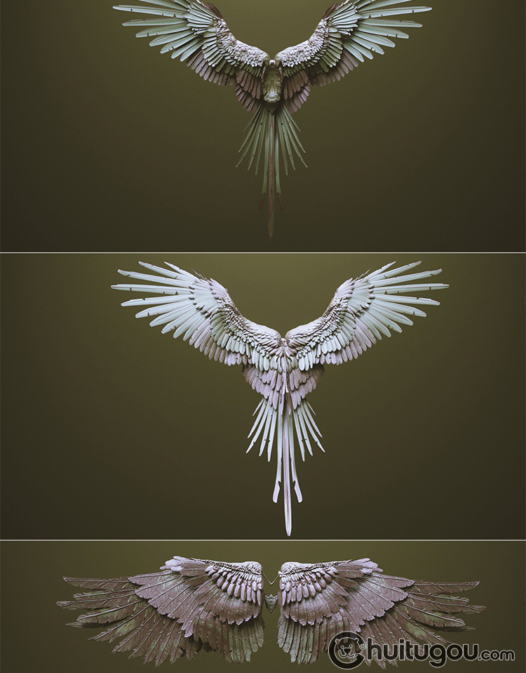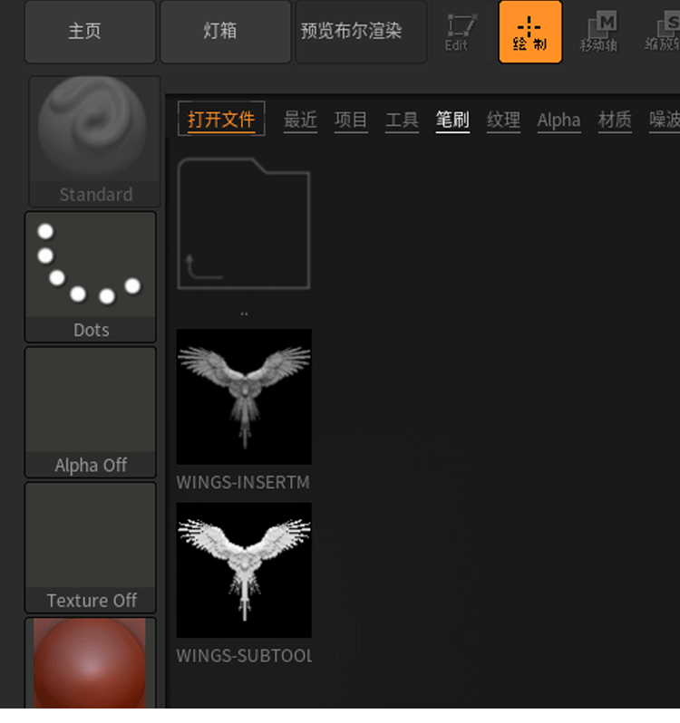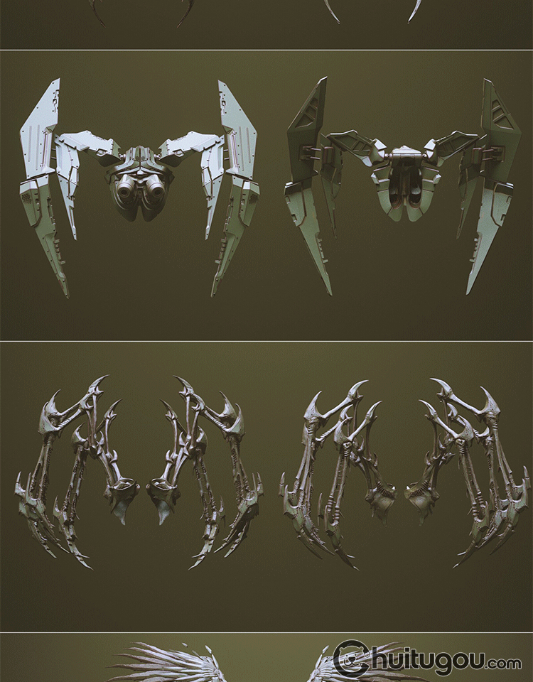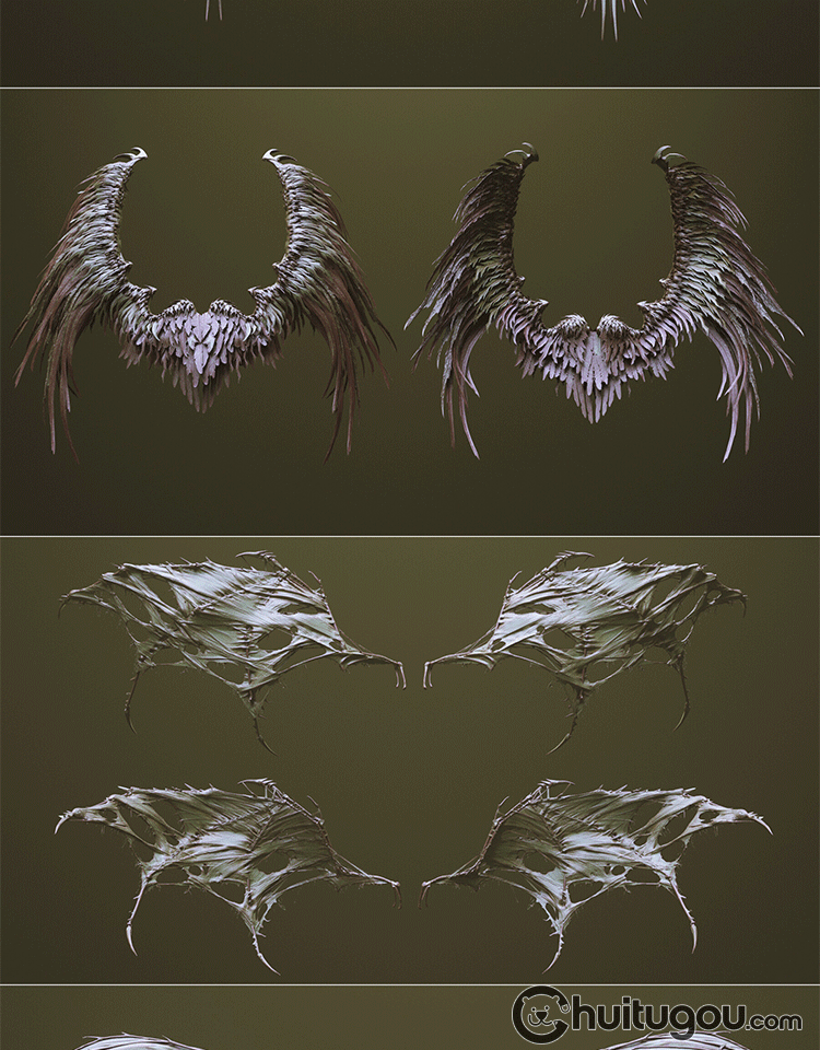 Zbrush科幻怪兽翅膀笔刷zbp生物肉翅IMM画笔ZB雕刻素材ztl格式obj