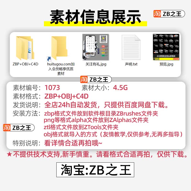 ZBrush笔刷ZB雕刻怪兽33款怪物嘴巴生物头骨IMM笔刷ZTL模型OBJ