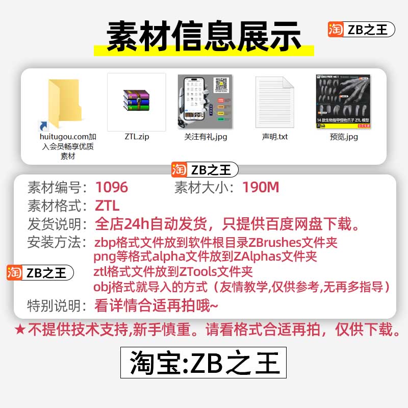 ZBrush笔刷素材40款恶魔生物手臂膀爪子ZB笔刷zbp格式ZTL模型OBJ