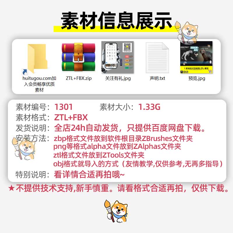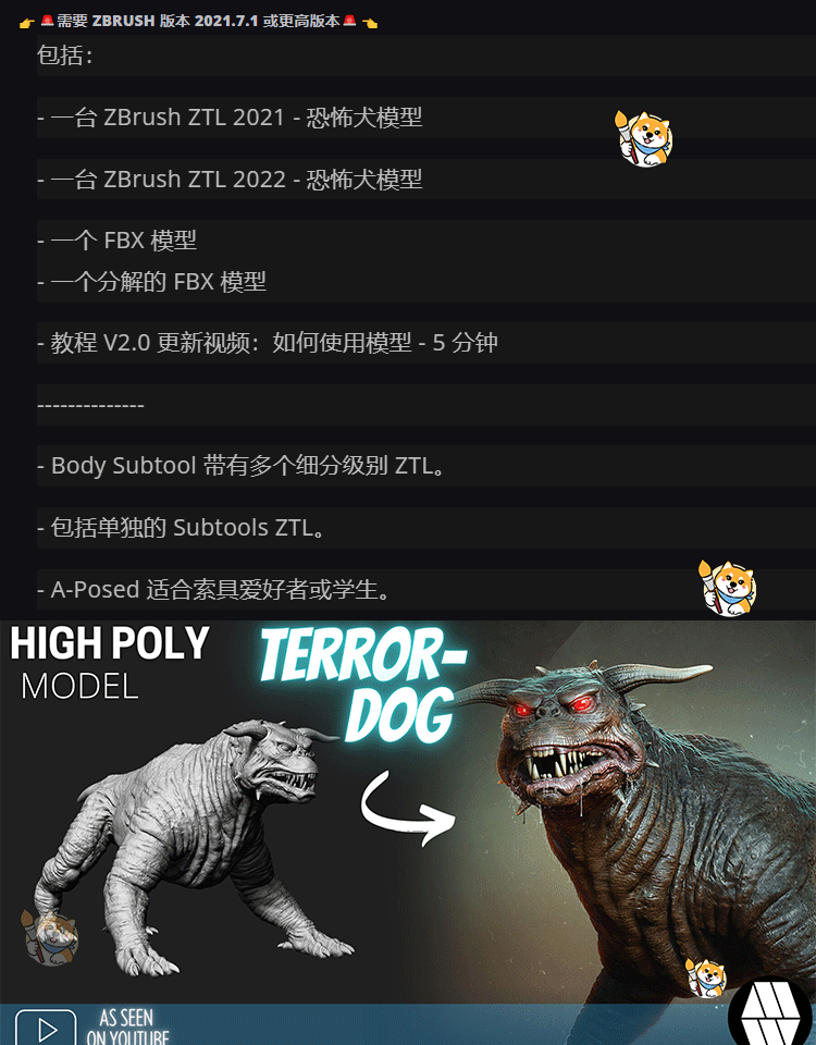 ZBrush素材1款地狱犬恐怖狗ZTL工程模型3D素材科幻写实动物FBX