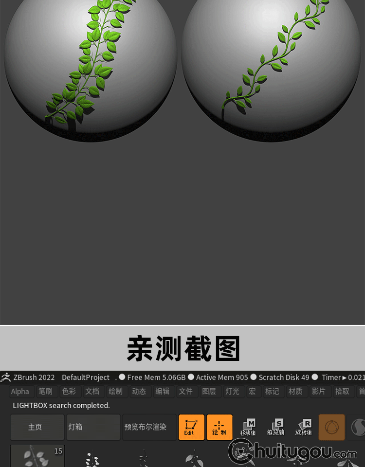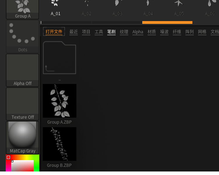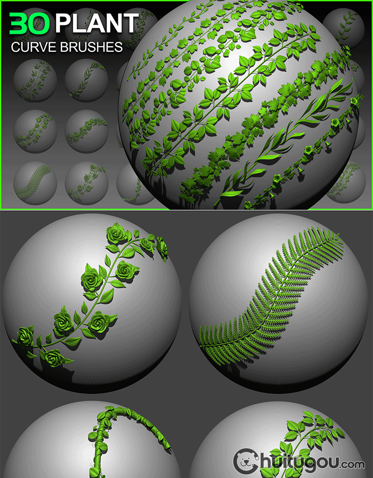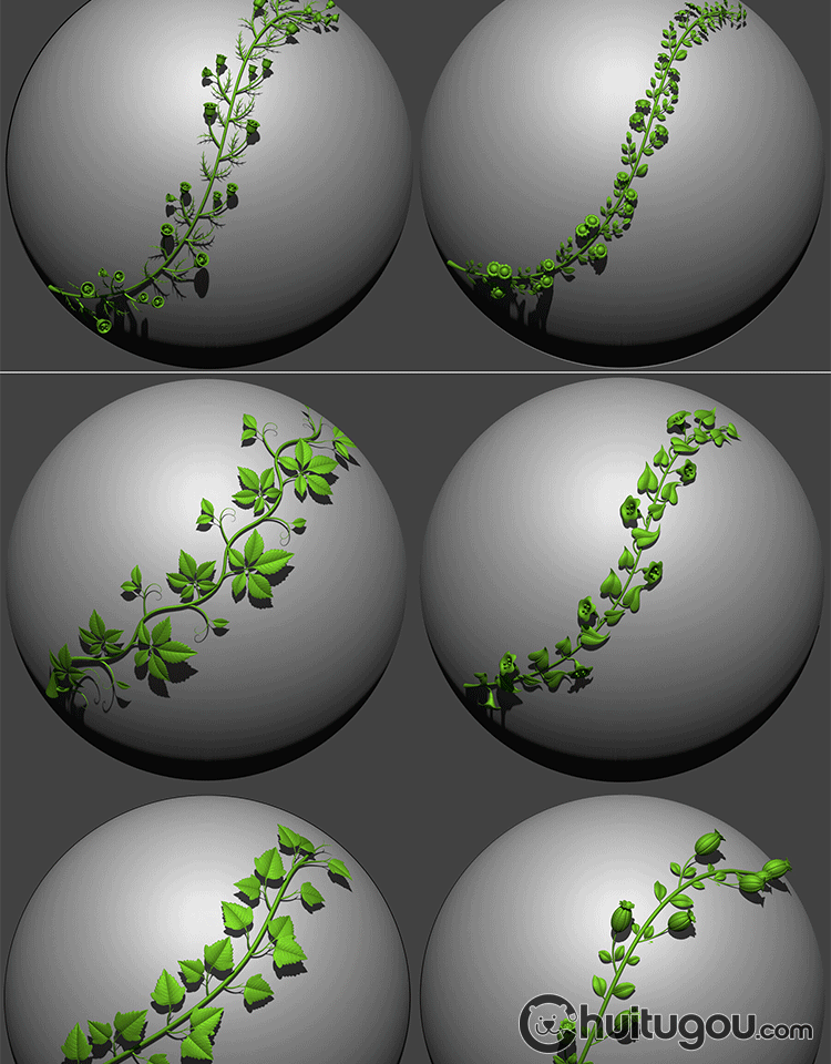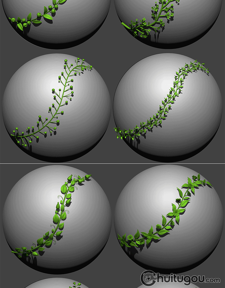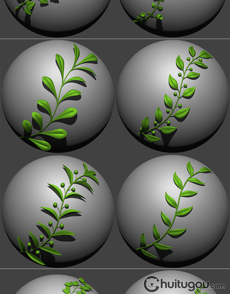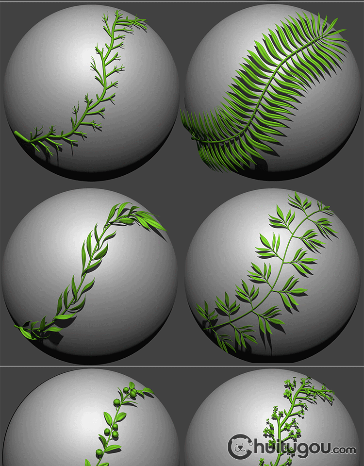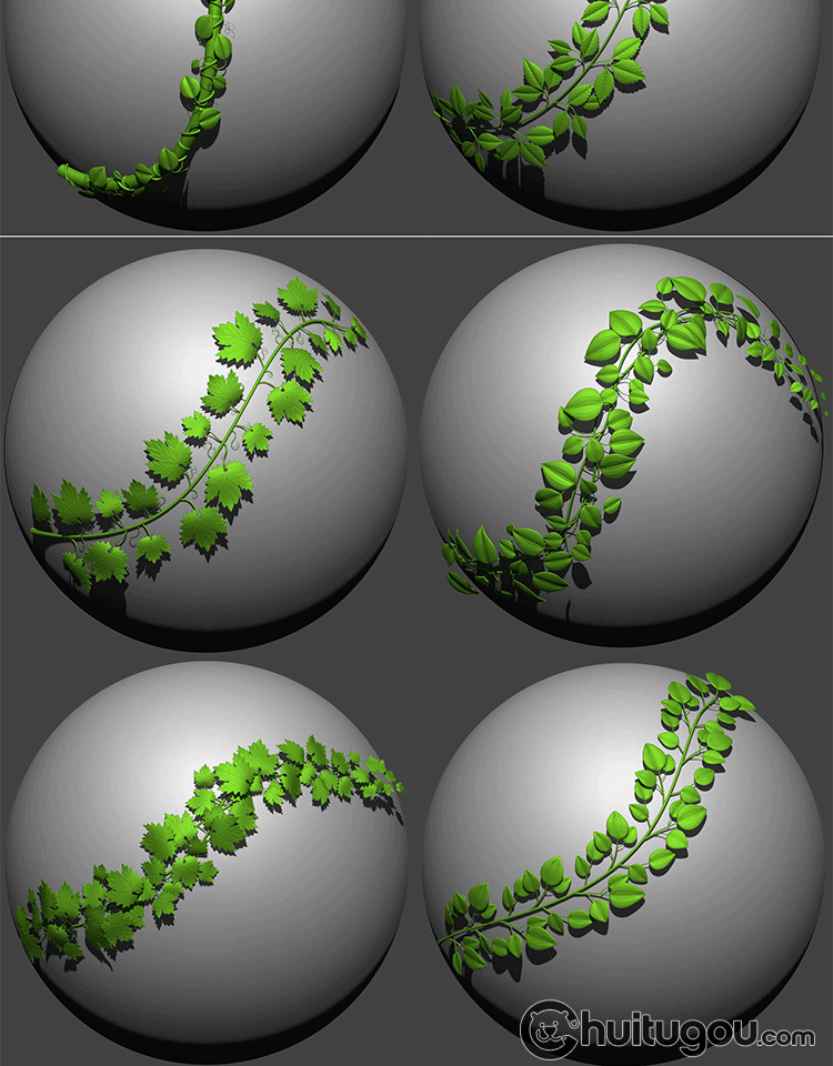 Zbrush植物藤蔓树叶子IMM曲线笔刷zbp画笔ZB树木枝叶雕刻建模素材