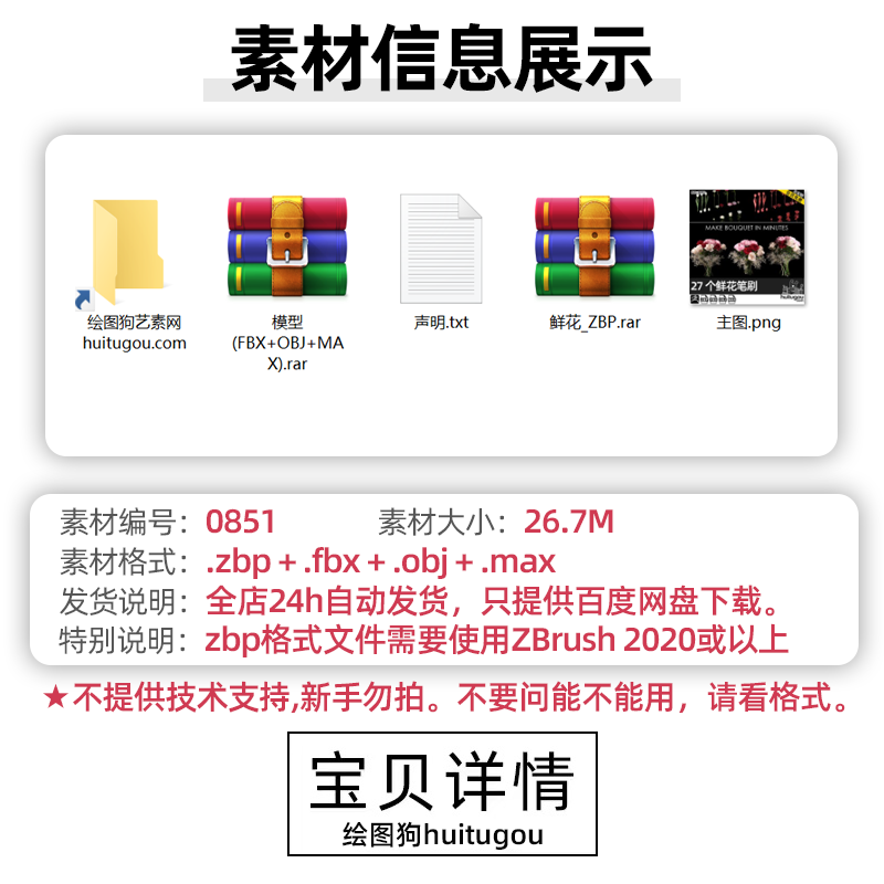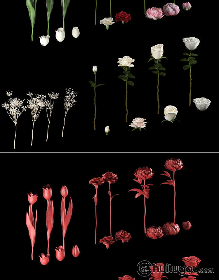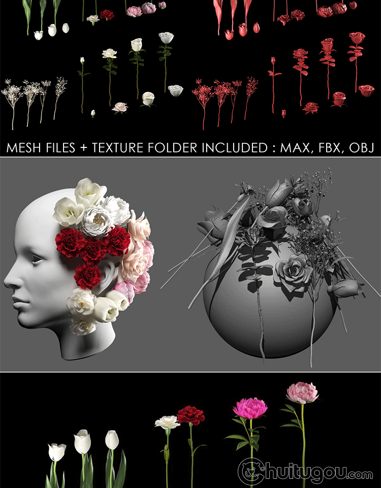 Zbrush鲜花玫瑰月季花朵IMM笔刷ZB画笔植物花束MAX模型FBX格式OBJ