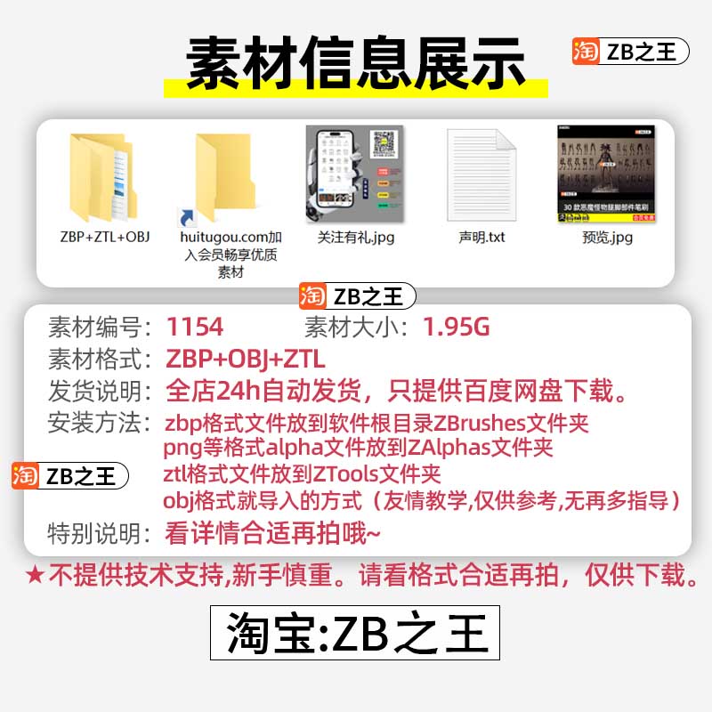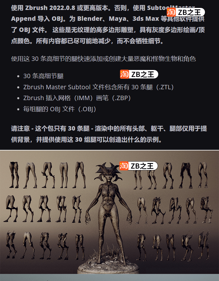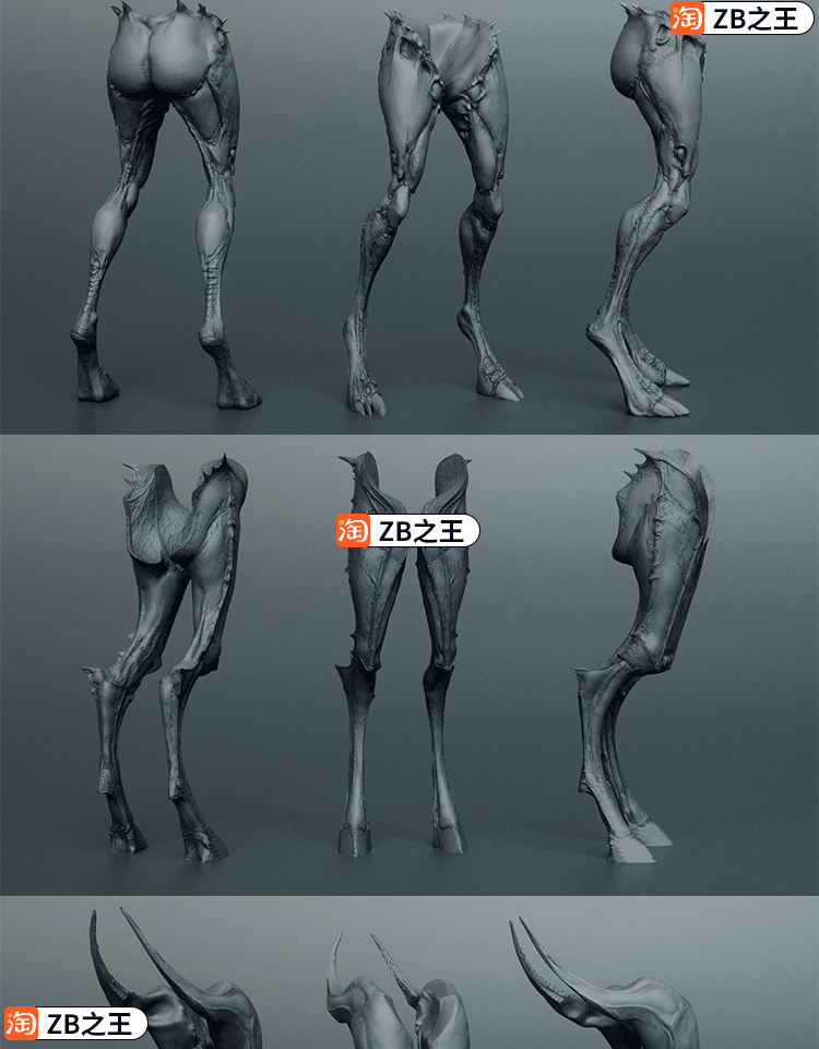 ZBrush笔刷30款恶魔怪物生物腿脚部件ZB笔刷ZBP素材ZTL模型OBJ