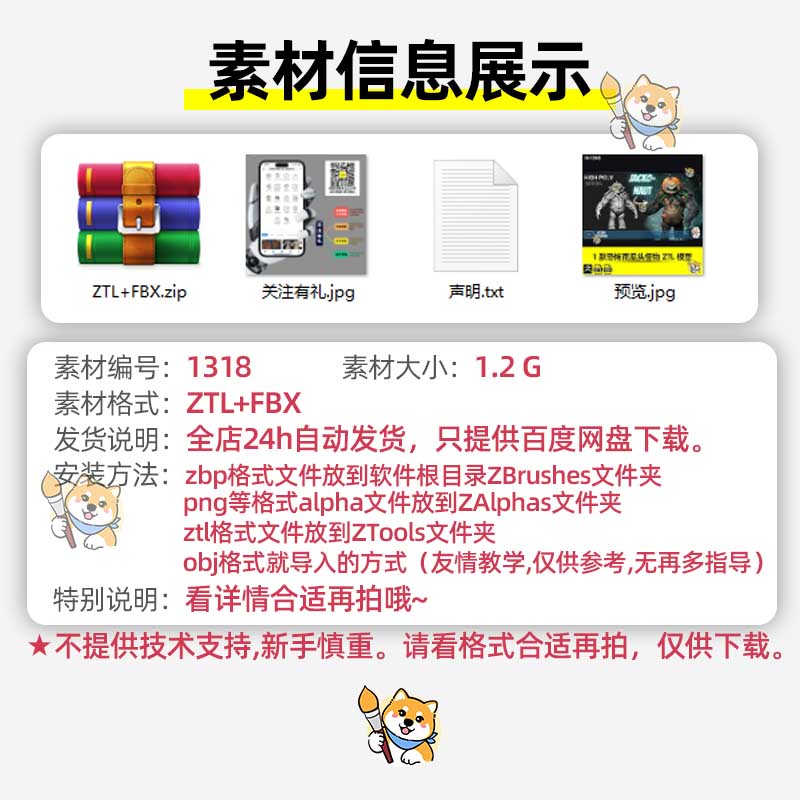 ZBrush素材1款恐怖鳄鱼杀手ZTL工程科幻写实角色3D模型FBX文件