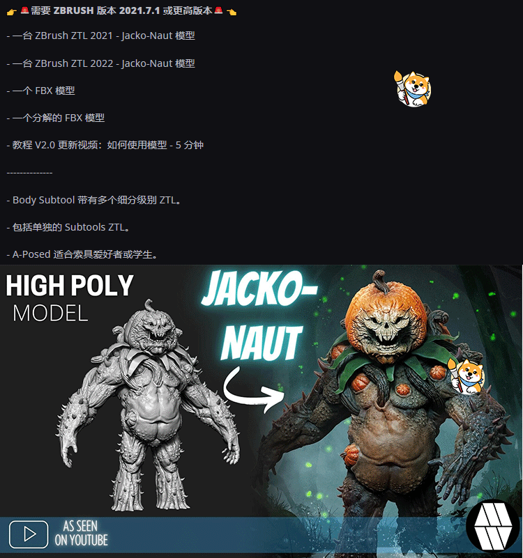ZBrush素材1款恐怖南瓜头怪物ZTL工程科幻写实角色3D模型FBX文件