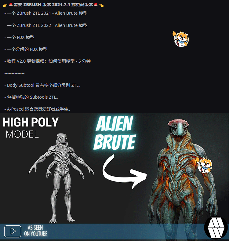 ZBrush素材1款外星龙人生物ZTL工程科幻写实角色3D模型FBX文件