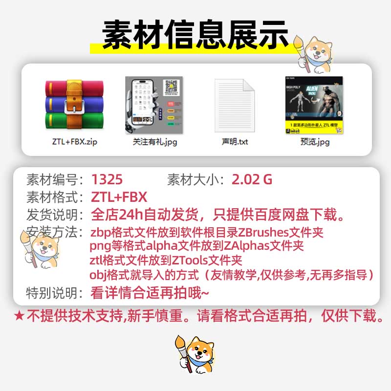 ZBrush素材1款科幻外星怪物生物ZTL工程写实角色3D模型FBX文件