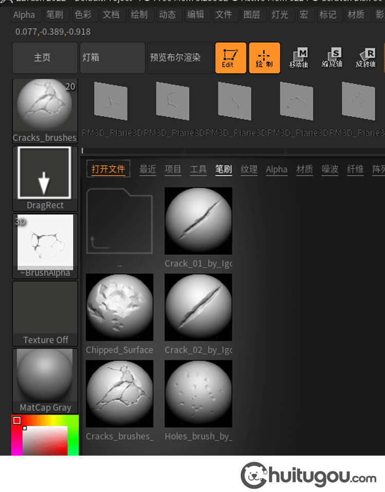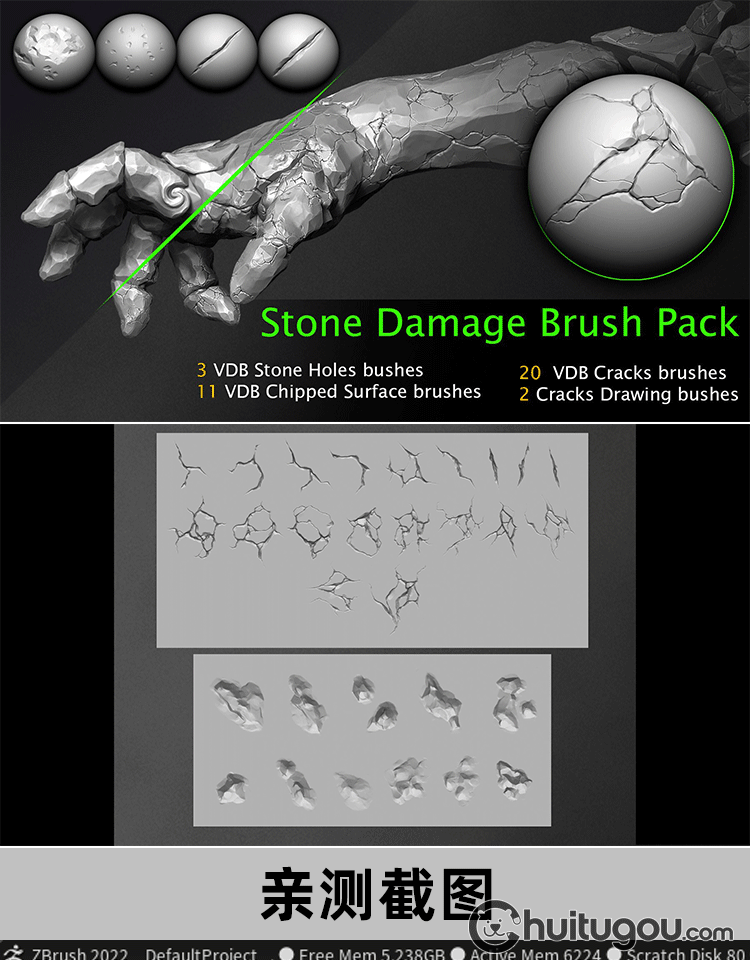 Zbrush石头岩石断面缝隙裂缝碎裂痕迹裂纹笔刷zbp画笔ZB雕刻建模